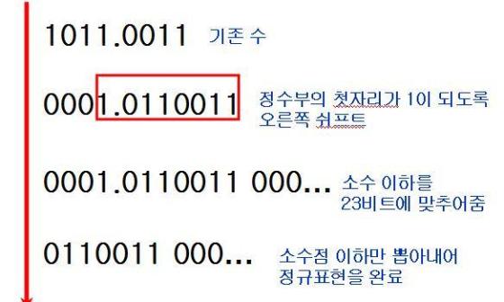 [기본원리] 부동소수 표현 : 정규표현과 익세스 표현