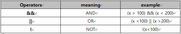 논리 연산자는 불 논리(Boolean Logic)에서의 기본 연산이 AND, OR, NOT에 대응하는 연산자가 제공되는 데, 비교 연산자와 마찬가지로 결과 값이 true 또는 false로 반환됩니다. 자세한 의미는 밑에서 보시겠습니다.