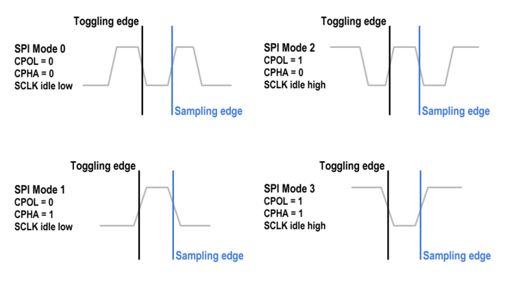 위상을 CPHA(Clock PHAse)라고 부르고, 극성을 SPOL(Clock POLarity)라고 부릅니다.