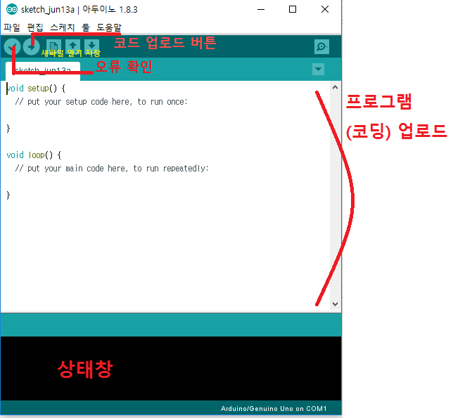 제타지니 작성 이제, 아두이노 자작도 어느정도 완성되어 가는 듯 하니, 아두이노 소프트웨어에 대해서 알아보도록 하겠습니다. 아두이노 소프트웨어 (Arduino Software, IDE, Integrated Development Environment 통합 개발 환경) 아두이노 소프트웨어는 다음의 페이지에서 받을 수 있습니다. ↓↓↓↓↓ www.arduino.cc Arduino - Home www.arduino.cc 실상, 프로그램을 깔고, 실행시키는 것은 그다지 어렵지 않습니다. 소프트웨어를 다룰 수 있는 것이 문제입니다. 따라서, 이번 '소프트웨어' 포스트에서 다룰 것은 여러 함수를 다루어 보려고 합니다. 물론, 'c언어'를 배우셨던 분들은 이해하기 매우 수월하실 것이지만, 아두이노를 기초적으로 배우시는..